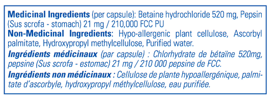 Betaine HCI Pepsin - Aide Digestive Naturelle