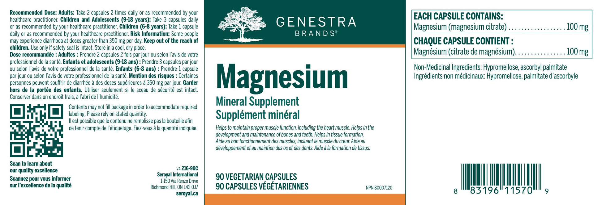 Magnesium est une formule contenant 100 mg de magnésium sous forme de citrate dans chaque capsule, conçue pour soutenir le métabolisme des macronutriments, la santé des os et la fonction musculaire. Le magnésium est crucial pour la contraction et la relaxation musculaire et peut aider à maintenir la fonction musculaire, particulièrement chez les personnes âgées physiquement actives.